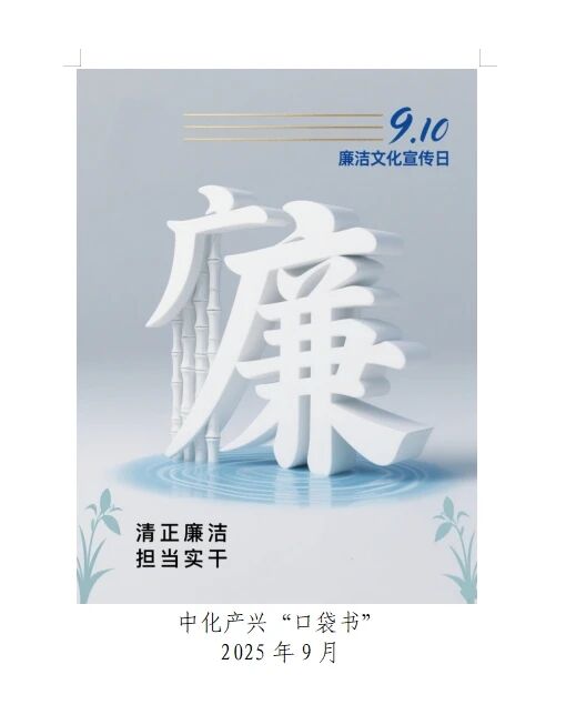 为落实中国中化廉洁文化三年行动方案及2025年“9·10”廉洁文化日集中宣传相关要求,近日,公司以中国中化“9·10”廉洁文化日为契机,组织所属各级企业上下联动、层层推进,开展了形式多样、内容丰富的廉洁文化宣传活动,在全公司范围内掀起了一股崇廉尚洁热潮,营造出风清气正、干事创业的良好氛围。